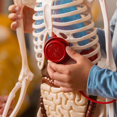 - Główne narządy wewnętrzne, takie jak serce, płuca, mózg, wątroba. Niektóre z nich możesz rozłożyć, aby obejrzeć ich wnętrze.