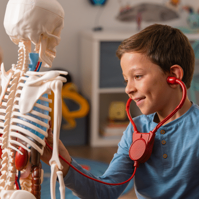 Odkryj zabawne rozmowy, pełne ciekawostek i odgłosów Twojego organizmu. Stetoskop jest bardzo łatwy w użyciu: wystarczy zbliżyć jego okrągły czujnik do symbolu na częściach Kostka, by usłyszeć samodzielnie (za pomocą słuchawek) lub z rodziną i przyjaciółmi (przez głośnik), co dzieje się w środku ciała człowieka.