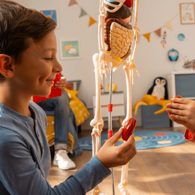 Złóż realistyczny, interaktywny model szkieletu naturalnej wielkości (110 cm) i dodaj do niego narządy wewnętrzne oraz mięśnie!