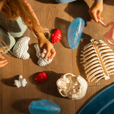 - Ponad 40 elementów odwzorowujących kości i stawy.