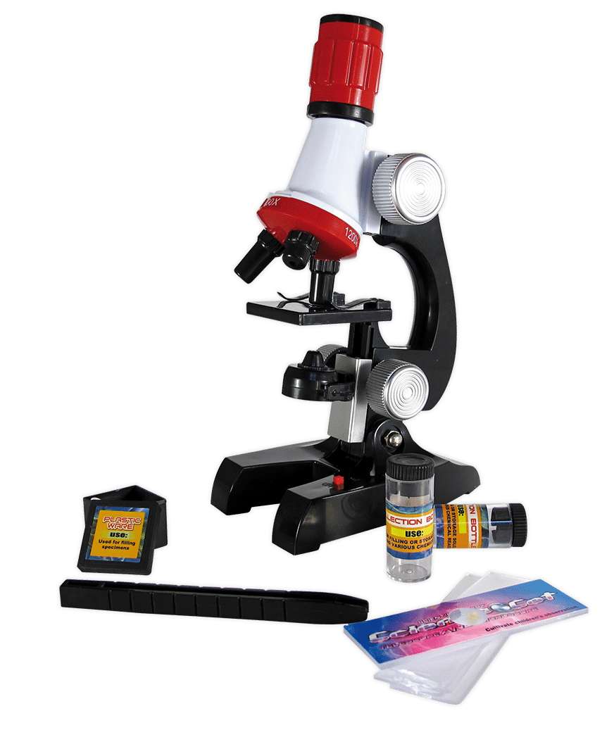 Przenośny mikroskop dla dzieci z zestawem akcesoriów. Umożliwia obserwację roślin, owadów, krwi, DNA, bakterii…